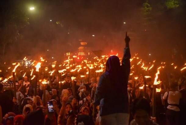 Begitu matahari terbenam dan gelap mulai menyelimuti kota, satu per satu obor mulai dinyalakan. Api kecil yang perlahan membentuk barisan panjang cahaya itu membentang di sepanjang jalan utama Kota Medan. Dari kejauhan, pemandangan tersebut tampak bagaikan bintang-bintang yang turun ke bumi, menciptakan panorama yang memukau mata.